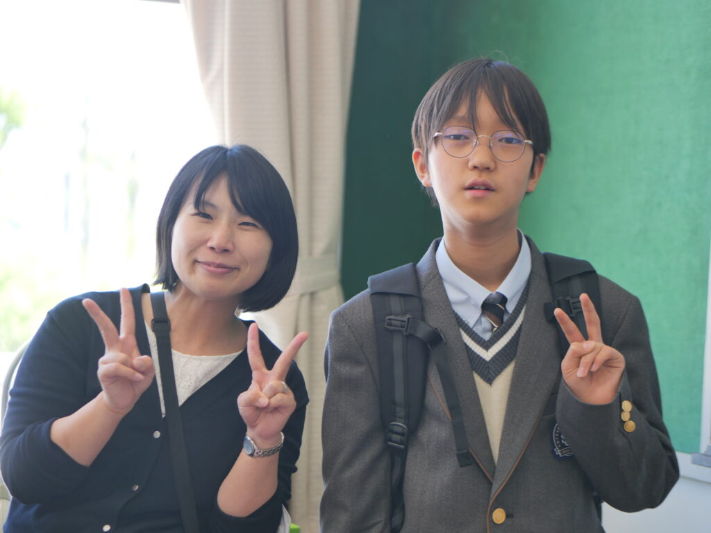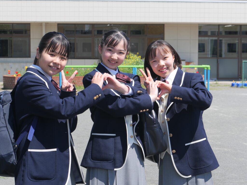 これまで見慣れていた小学校の制服とは違い、真新しい中学校の制服に身を包んだ姿に、一気にお兄さん・お姉さんになったような成長を感じます。その姿をいち早く見せに来てくれた卒業生たちは、まぶしい笑顔でいっぱいでした。