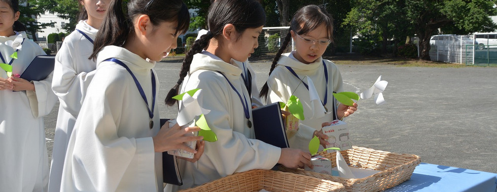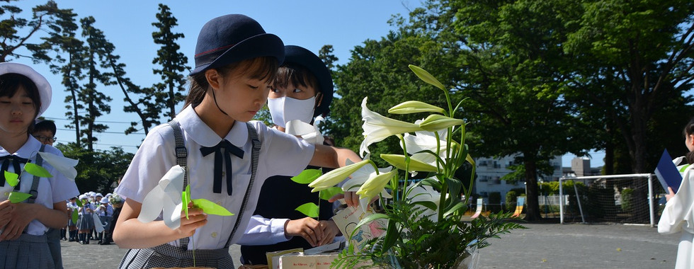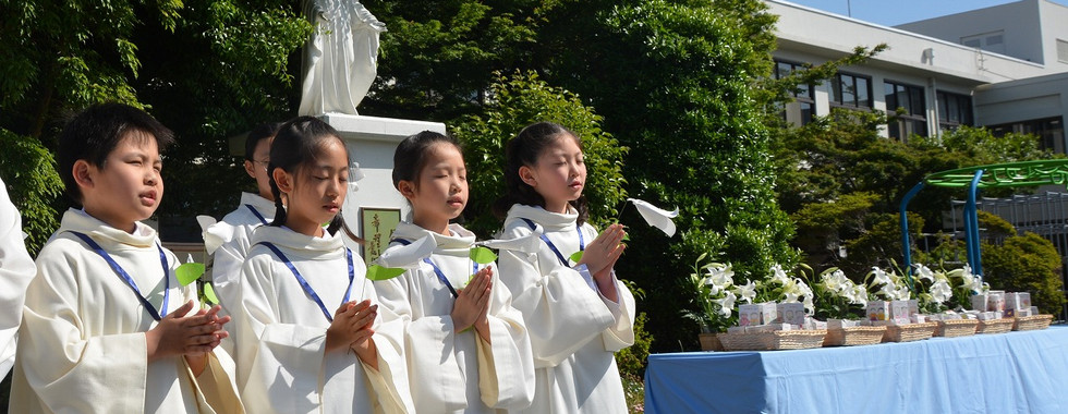5月はマリア様の月。今年は素晴らしい青空に恵まれてのマリア祭となりました。「マリアさまのこころ」や「たたうべきマリア」という聖歌を歌い、マリア様のように素直で優しく、強い心を持つことが出来ますようにとお祈りしました。子どもたちが心をこめてお捧げしたユリの花は、教室で、美しく花を開いています。